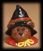 Pop the hat off this high glaze ceramic jar and fill with your favorite candy. 7″H. Part of Bruin Up Trouble collection 2004. (86620)