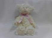 14″H. Chenille fabric. Very soft. Part of Down on the Farm series. Issued 2004. Fuzzy cream lamb with pink satin bow. (552033)