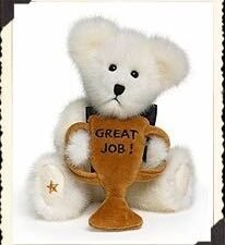 Thank someone for a job well done with Barry, a snow-white bean filled bear that holds a gold velvet embroidered pillow (Great Job) and a gold star embroidered on ...