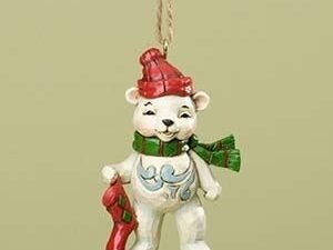 This jolly bear dressed for a snowy day holds a stocking in preparation for the season. 1.25″W x 3.875″H. (4034411)