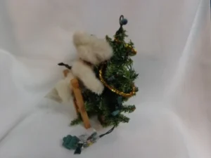White bear with plaid bow, multi colored lights. 10″H x 7″W.