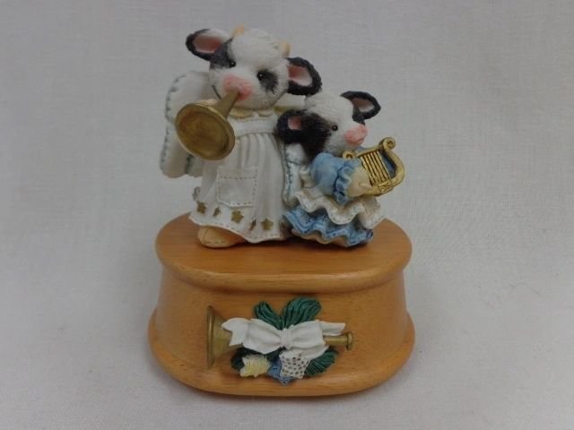 Designed by Mary Rhyner-Nadig. 4 3/4″H x 4 1/2″W x 3 1/2″D. Issued 1994. Wooden base. Plays “Angels We Have Heard on High.” (651699)