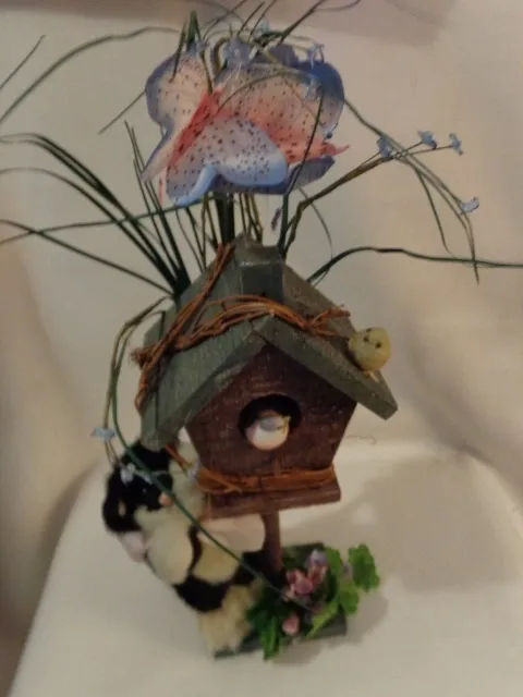 15″H x 6″W. The birds aren’t too sure what’s going on. Is that cat actually trying to get in our nest?!