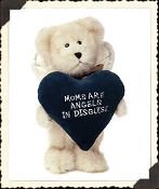 For Mother’s Day, birthday or any day! Carin a tribute to Moms features a buttercream coat of plush, gold thread quilted wings, a bit of bean filling, and a gold satin bow and holds a “Moms Are Angels in Disguise” embroidered velvet heart pillow. 8″H, 2002. (903200)