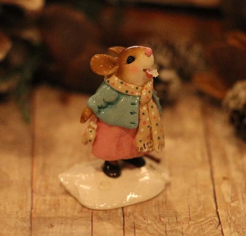 Another color change on a long time favorite, this mouse is overjoyed as she catches a perfect snowflake on her tongue from this year’s first snow. Issued C’mas 2022. Allow 2-3 weeks.