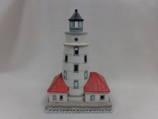 Originally built at the mouth of the Chicago River, this lighthouse was moved to the harbor in 1919. Its award-winning Third Order Fresnel lens was on display at the Columbian Exposition. Built 1893. Issued 1993. 9″H x 9″W. Lights via cord and night light bulb, included. (1010)