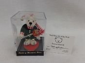 3″H; 2002-03; L/E of 1,000pcs; Designed Becky Wheeler. Hand made of velvet. He has a bell on his stocking hat, and each foot. Carries a stick reindeer. Very detailed. Not a toy. (713)