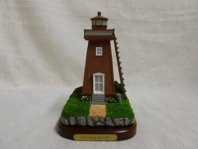 The tower was placed atop the fort and stood 75′ tall. It exhibited it’s light at a height of 51 feet. It housed a fifth order lens. Replica approx. 4.5 x 3.5 x 5-6″. Sits on wood base not attached. Comes in tin with cert.