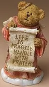 “Life is fragile, handle with Prayer.” Precious angel bear that spreads good will and special blessings. Part of God’s Lil’ Angels series 2004. 3 1/8″H. (24504)