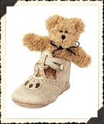 Blessed Christening. Nursery keepsake inspired by vintage-style baby shoes. Hand-sculpted and painted resin shoe. 3 1/2″H. Issued 2002. (641006)
