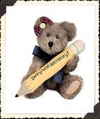 The perfect gift for Administrative Professionals Day! This mocha secretary bear features a plaid bow, navy necktie and a cotton embroidered pencil. 8″H, Issued 2002. (903018)