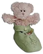 Tippy Toes. Nursery keepsake inspired by vintage-style baby shoes. Hand sculpted and painted resin shoe. 3 1/2″H. Issued 2003. (641011)