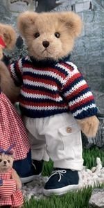 Bear in rwb striped shirt. Issued S 2005 and retired 2008. 14″H. See his friend Reagan #1538. (1537)