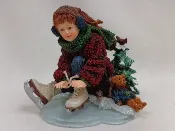 Winter Fun. “We live amid surfaces, and the true art of life is to skate well on them.” Emerson. 3 1/2″H. Issued 2003. 1E. The shoelace she is tying is like a real shoelace. (3587)