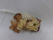 3 1/2″H resin ornament. Issued 2004. Angel in gold and cream dress holding a star saying JOY. (257053)