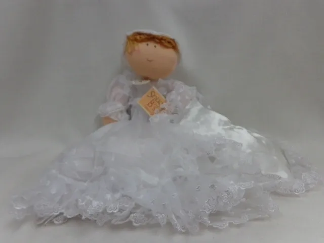 Daddy’s Angel. 15″H rag doll. Yarn hair, big soft shoes. 2003. Christening gown look with satin pillow.  (4658)
