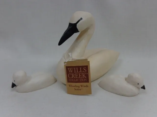 Swan 7 1/2″L x 5″H; Cignets ea. 3″”W x 1 1/2″H. The Whistling Wind Series. Part of the Wills Creek Collection. 2002. (7012)