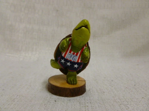 Turtle jogger might be slow be he’s persistent! Annette sculpted him when Willy was about to run a marathon in 1978. He was retired in 1979. 2″ x 1″. Part of Forget-me-knot series to commemorate Annette’s 95th birthday, 2014. Limited edition of 315 pcs. Numbered and comes with authenticity. (TS-1s)