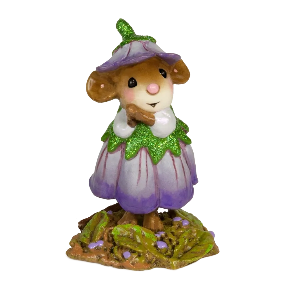 This sweet little mouse is wearing the glistening petals of February. Like a birthstone but oh so much more heartfelt, she makes a great gift to celebrate a special date, person, or simply a little someone to connect with. Sculpted by Willy….Retired s/o