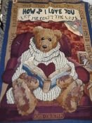 51×68″. 100% cotton, machine wash, gentle, cool water/dry. Triple weave. Boyds design from resin Wilson w/Love Sonnets (#2007), from 1998. (ATBBWLS)